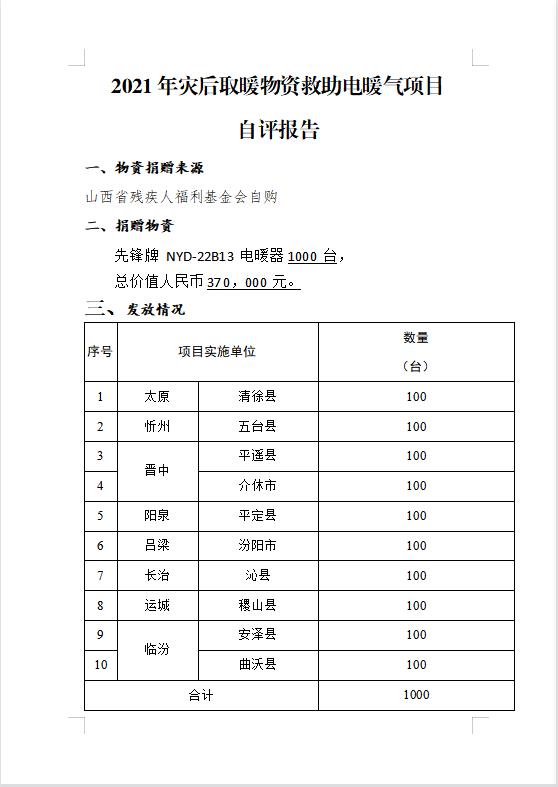 2021年灾后取暖物资救助电暖气项目