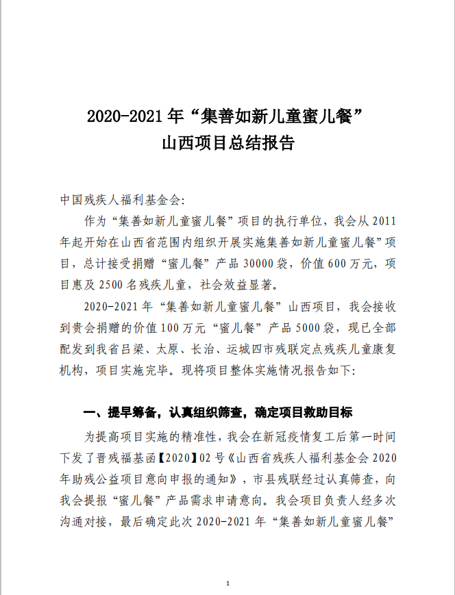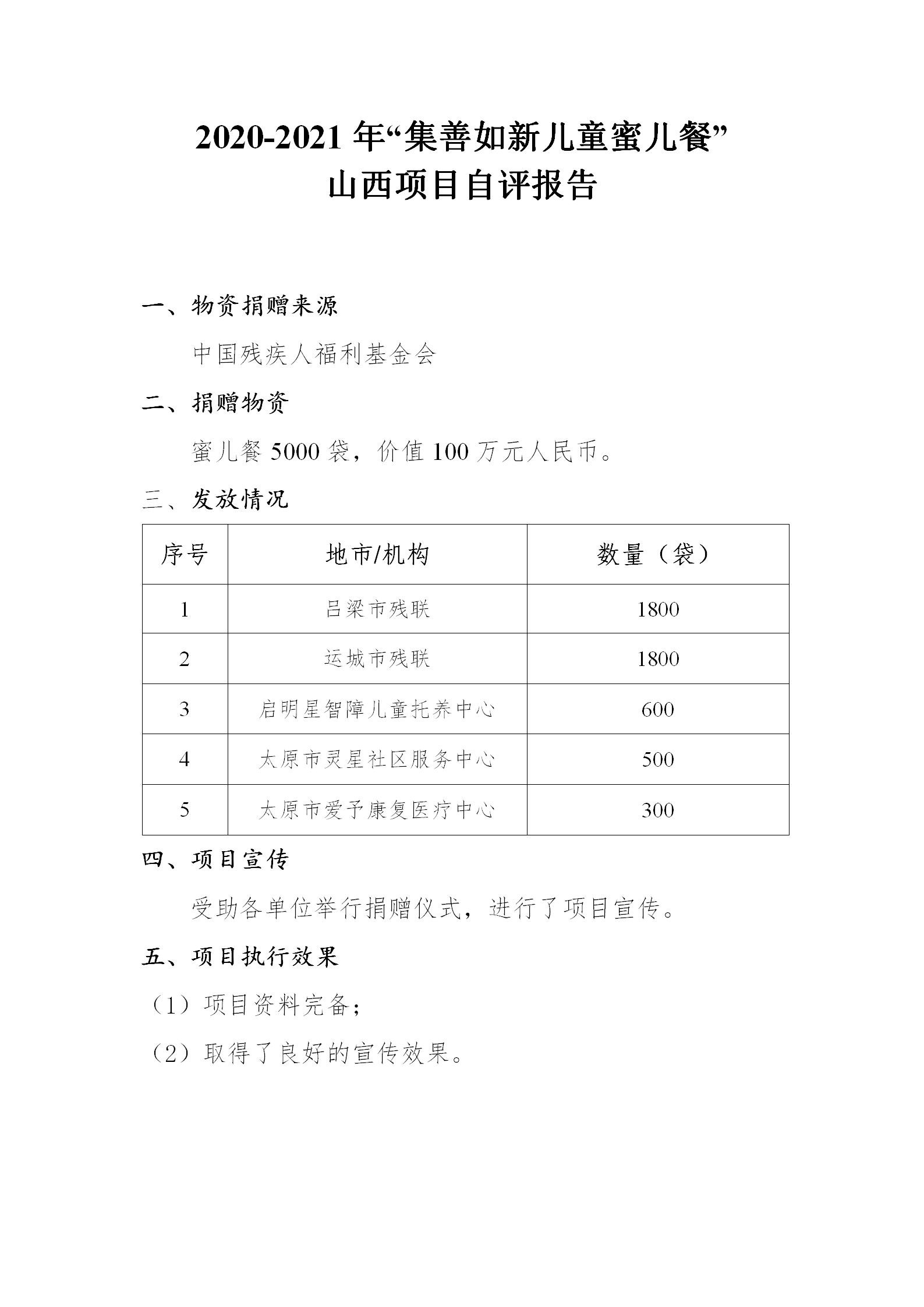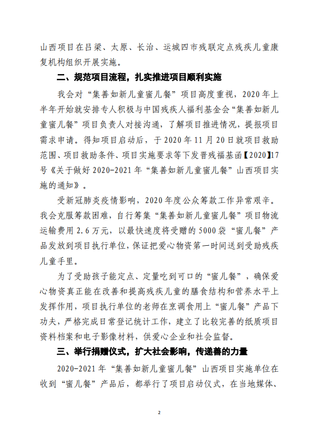 2020-2021年“集善如新儿童蜜儿餐”项目